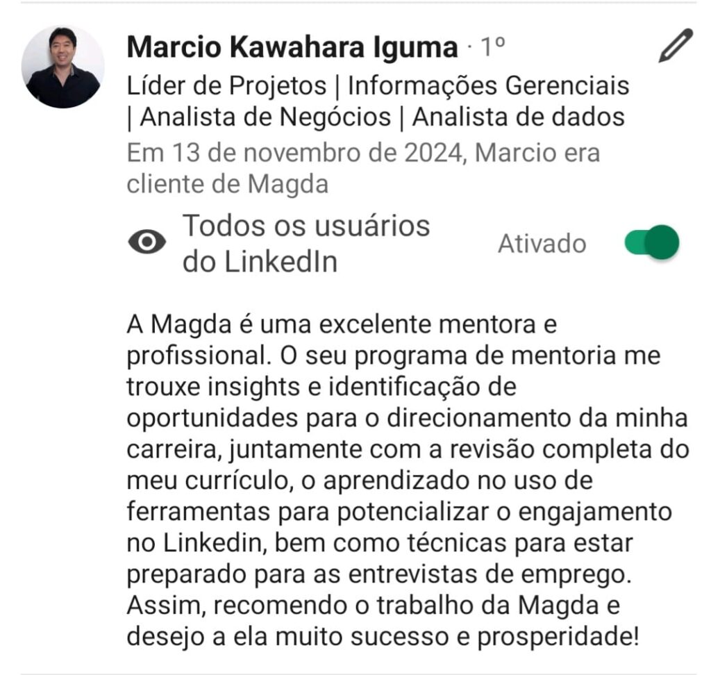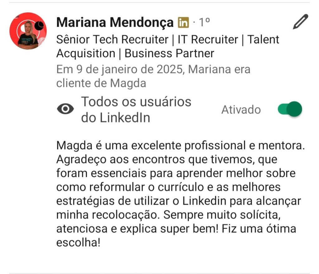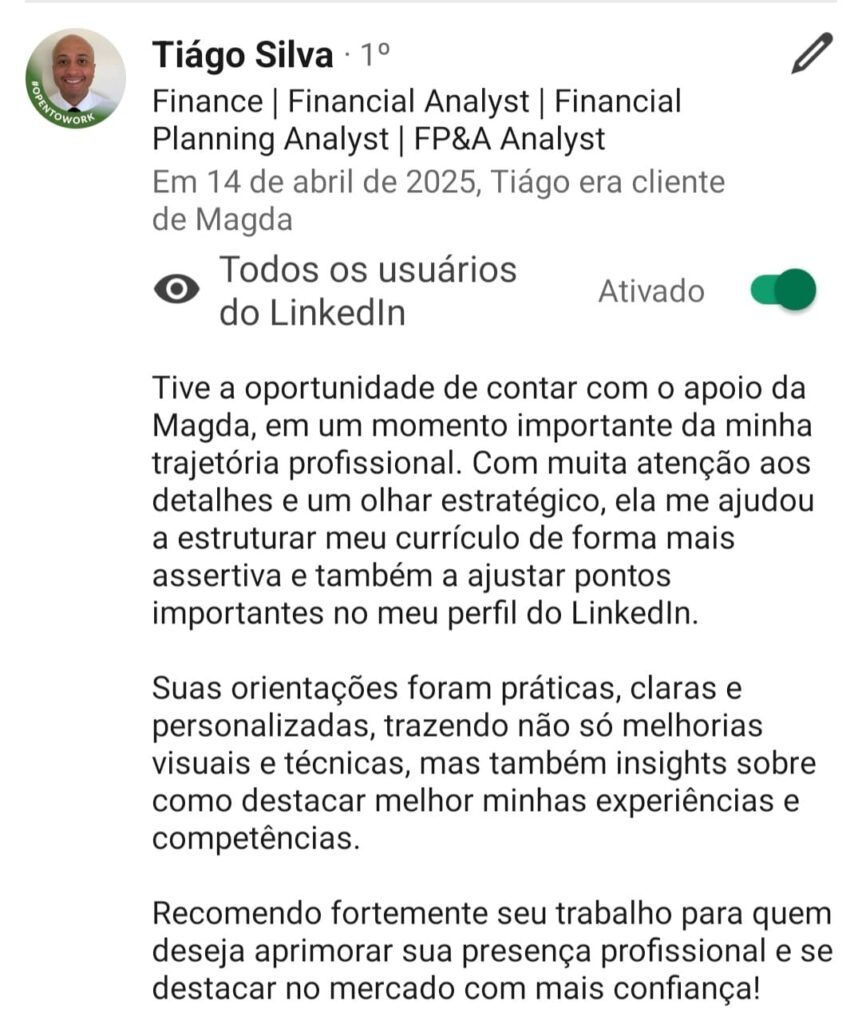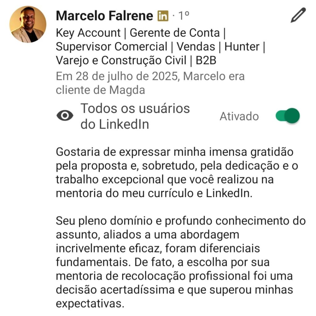 Agora que você já tem um currículo profissional chegou a hora de construir seu perfil no Linkedin de forma correta e atrativa conforme as regras dos RH´s. Nesse curso você vai aprender na prática e de forma rápida como fazer isso.